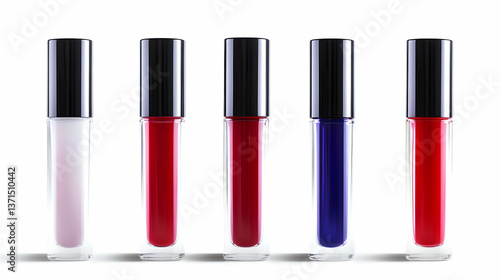 Photo of Colorful Lip Gloss Bottles Displayed Against a White Background