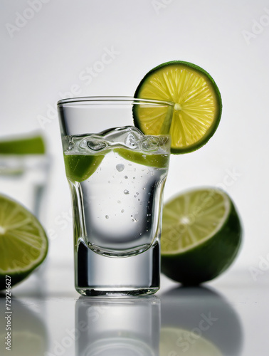 Photo Of Glass Shot Of Tequila With Lime Isolated On White Background
