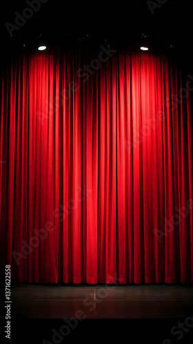 Photo of Red Curtain on Stage Lit by Spotlights in a Dark Theater