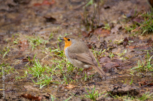 Photo of the European Robin (Erithacus rubecula). Detailed and bright portrait. Autumn landscape with a song bird. Erithacus rubecula in Orbea Natural Park, Basque Country. Spain.