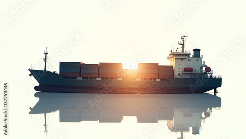 Photo realistic as Silhouette of a freight ship and a budget ledger symbolizing supply chain budgeting in double exposure with copy space. concept as A silhouette of a freight ship intertwined with a