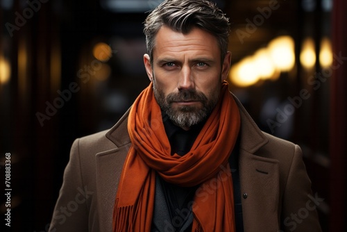 Photo Realistic of a Man in a Formal Topcoat and a Cashmere Scarf, Generative AI