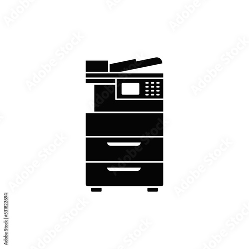 Photocopy, printer icon in black flat glyph, filled style isolated on white background