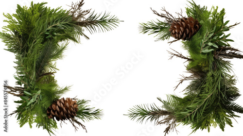 Photograph of a rustic green leaf frame constructed from a mix of pine needles, spruce boughs, and cedar branches