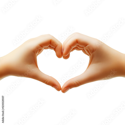 Photograph of two hands forming a heart shape isolated on transparent or white background, PNG file.