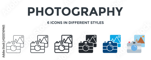 Photography Icon In Different Style Vector Illustration. Designed In Thin Line, Regular Line, Bold Line, Glyph, Color Fill, And Flat Style Can Be Used For Web