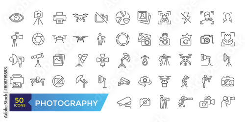 Photography studio and film icon set. Photo lens technology, different digital icon collection.