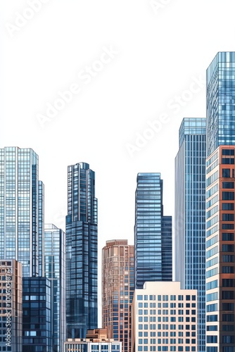 Photorealistic depiction of modern skyscrapers showcasing contemporary urban architecture in a cityscape setting