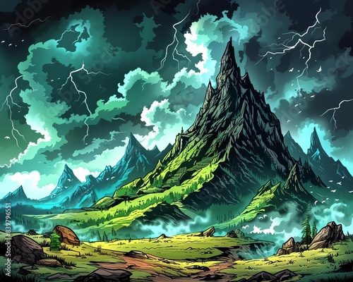 Photorealistic digital painting of a mountain range