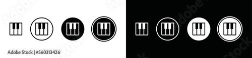Piano music icon. Piano keys music icon in the circle symbol in the balck and white background for apps and websites, vector illustration