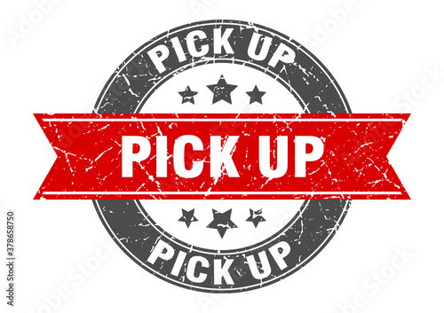 pick up round stamp with ribbon. label sign