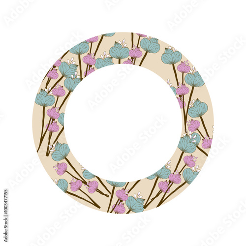 Picture Frames Flower. Circle Frame Clip Art Floral Design. Vector flower pattern element design. A template for printing postcards, invitations, door decoration, party, etc.