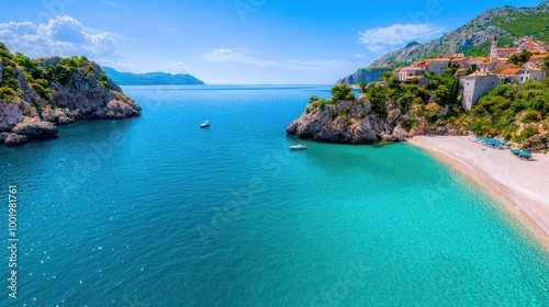 Picturesque Croatian Coastline with Turquoise Water and Sandy Beach
