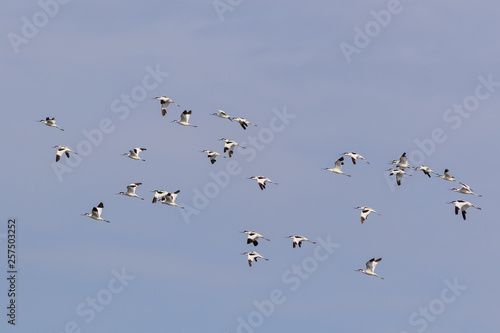 pied avocet (recurvirostra avosetta) in flight