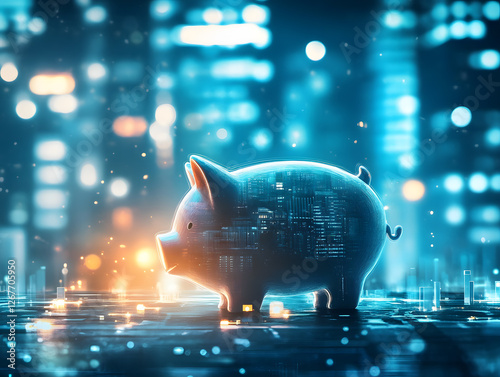 Piggy bank as a concept for accumulation, savings or investment. Neural network AI generated art