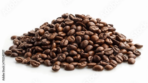Pile coffee beans isolated on white background and texture