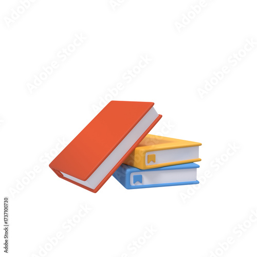 Pile of Books 3d Render Orange Yellow and Blue on Transparent Background