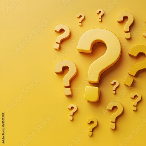 Pile of golden Question Marks on golden background with copy space - 3D illustration