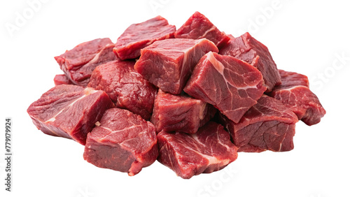 Pile of raw beef meat isolated on transparent background. Top view.