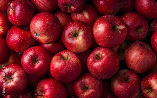 Pile of red apples in the background, top view, high resolution photography, high detail.