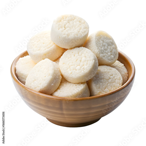 Pile of round sweet pastries in a bowl isolated on transparent background