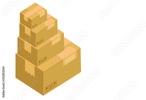 Pile of stacked sealed goods cardboard boxes. Flat style vector illustration isolated on white background.