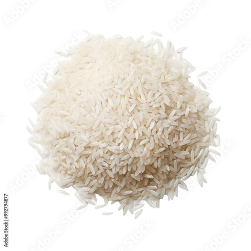 Pile Of Uncooked White Rice Grains Isolated On White Background