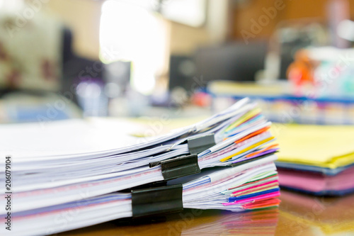 Pile of unfinished a bundle documents on office desk, Stack of business paper