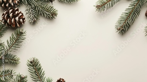 Pine branches with cones on a white background.