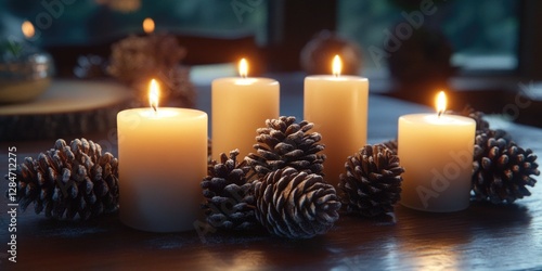 Pine cone candle holders, creating a festive atmosphere for the holiday season.