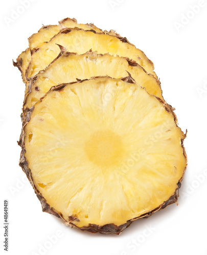 Pineapple with slices on white background