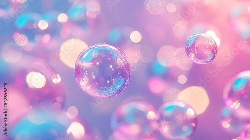 Pink and blue bubbles drift through the air, creating a playful and colorful atmosphere,