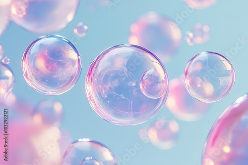Pink and blue iridescent soap bubbles. Perfect for a background or product display.