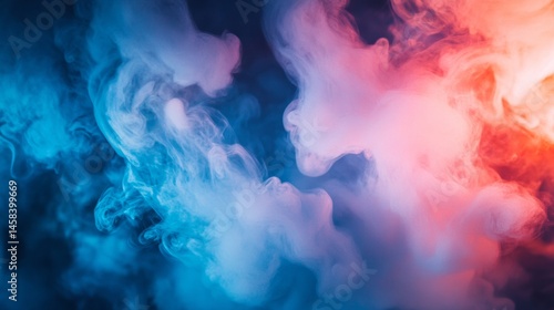 Pink and blue smoke clouds in abstract space design with dreamy surreal atmospheric scene concept