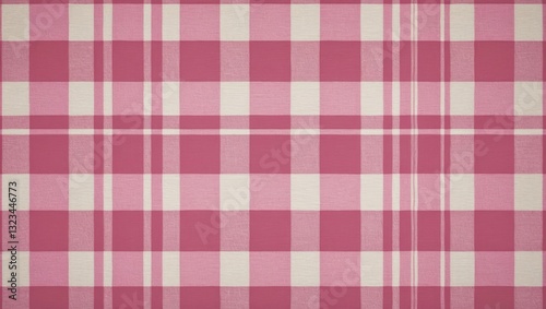 Pink and cream plaid fabric pattern with large and small squares in vertical and horizontal arrangement, creating a classic textile design.