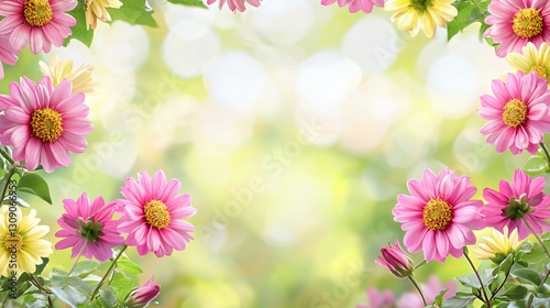 Pink and Yellow Chrysanthemum Flowers with Soft Focus Background