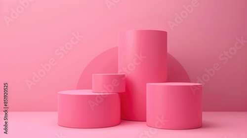Pink Background. Abstract Three-Dimensional Product Presentation Podium for Cosmetic Display