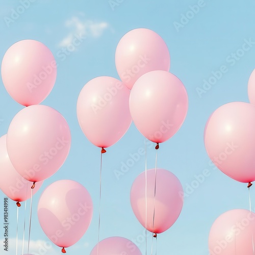 Pink balloons being released into the sky at a breast cancer awareness event selective focus - Symbolic release of hope and support - whimsical - Overlay - Open sky backdrop