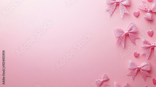 Pink bows and hearts on soft pastel background, symbolizing innocence and creativity in girlhood design