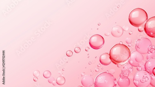 Pink Bubbles Abstract: A delicate arrangement of translucent pink bubbles floats on a soft pink backdrop, creating an ethereal and dreamy abstract image. Perfect for beauty, wellness.