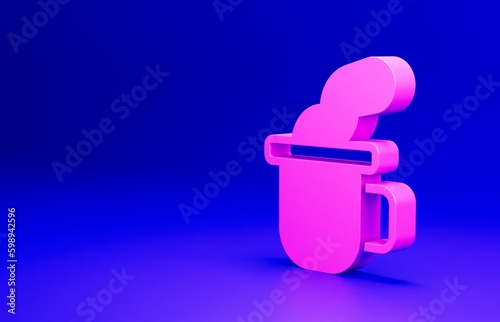 Pink Cup of tea icon isolated on blue background. Minimalism concept. 3D render illustration