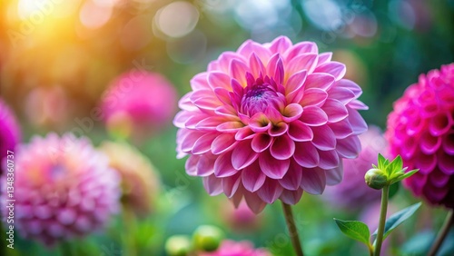 Pink Dahlia Tilt-Shift Miniature Garden Photography, Blooming Flowers, Close-Up Macro, Shallow Depth of Field, Soft Focus, Bokeh, Miniature World