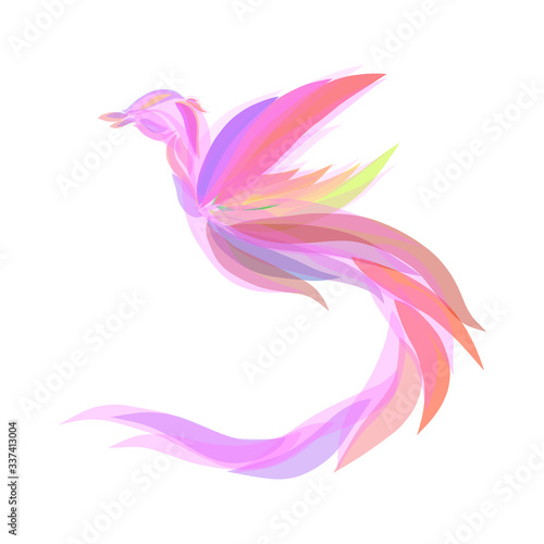 pink fairytale bird of paradise with elegant plumage flying flapping wings