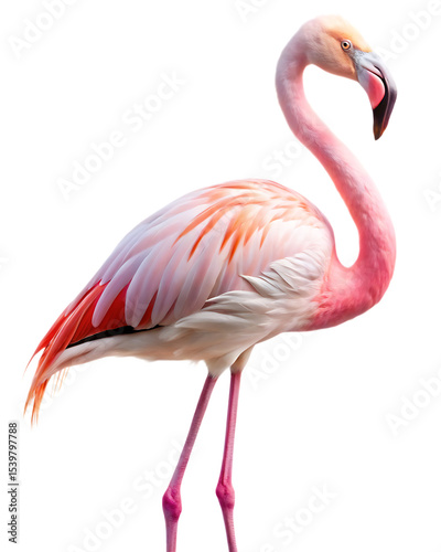 Pink Flamingo Standing Side Profile Studio Lighting A I G E N E R A T E D - P N G isolated on a transparent background