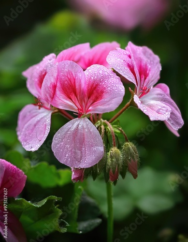 Pink flower with dew drops