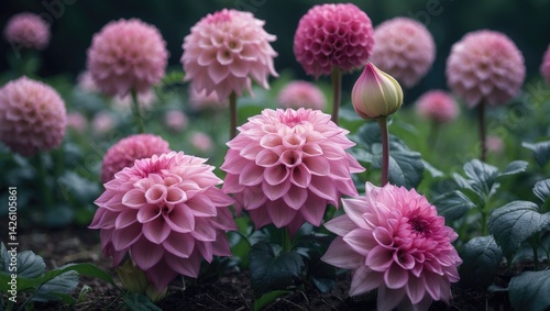 Pink flowers with unbloomed buds on flower bed for bouquet arrangement