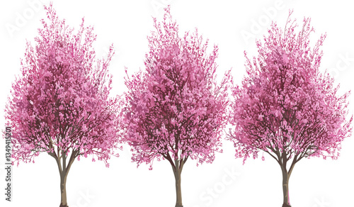 Pink flowery trees set, blossoming trees, vector isolated trees, transparent backgrounds, PNG, blooming flowers, garden illustration, nature tree design, botanical trees