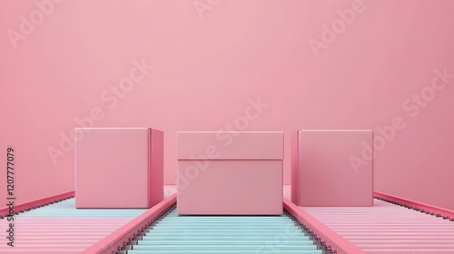 Pink Geometric Conveyor Belt with Cargo Boxes in Minimal Logistics Style 3D