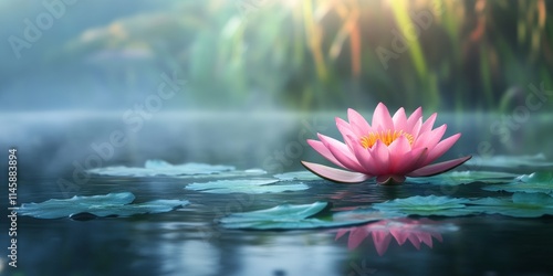 Pink lotus flower beautifully blooming in a serene pool, showcasing the vibrant colors and delicate petals of the pink lotus flower, adding tranquility to the natural surroundings.
