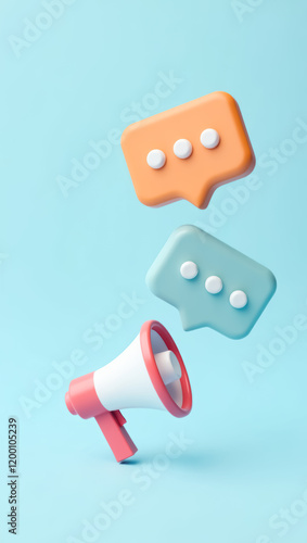 pink megaphone and pastel speech bubbles convey a message of communication.